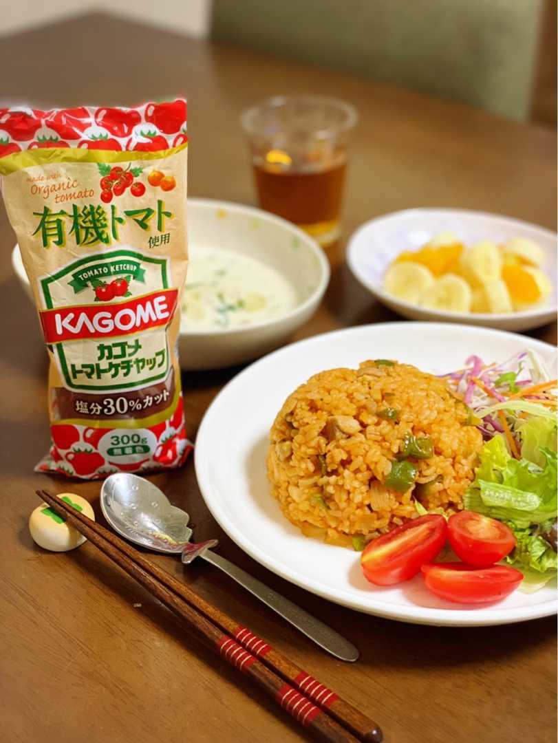 こんばんは☺️にゃももんです✨✨ 今日の晩ご飯は有機蕪のクリームスープと有機野菜と有機ケチャップのチキンライスと有機バナナのデザートです✨✨ このカゴメのオーガニックトマトのケチャップは美味しくて安全でずっと購入しています❣️ こちらは2本入りですが3980円以上で送料無料になるのでいろんな有機調味料をまとめ買いしています😍 やっぱり家族には安全なものを食べさせたいですよね❣️いまはとくにコロナで買い物などは安全とは言えないのでネットでのお買い物は助かりますね❣️ 有機トマトケチャップが美味しい😍
