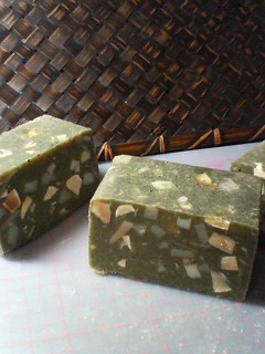 えー、放置中に作った石けんを少しずつアップしますコンフェティソープ。なんてことはなくて、切れ端が貯まったので…オイルはオリーブ・ココナツ・アーモンド・パームココナツ多目で泡立ちを期待!土台の緑色はヨモギパウダーで。トレースが出たらヨモギパウダーと混ぜて(もちろん小分けして混ぜてからですよ~)さらにもったりトレースが出たらコンフェの石けんを入れて。香りはEOでラバンジンとレモングラスを1対1。さてさて出来上がりは~おっきな塊です。。ちゃんと切り分けたらこんな感じ。ハイ、コンフェ多すぎこの石けん、現在生後2ヶ月。退色も香り落ちも無し。優秀ですココナツの期待も成功、まずまずの泡立ちおまけにココナツとパームのチカラで固さも満足