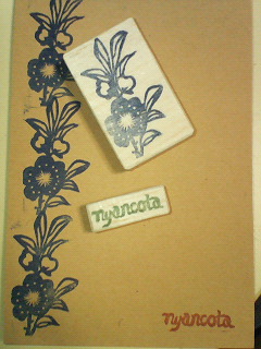 昨日の今日で、また切り絵の図案に挑戦!なんかの花。大きな図案の一部で、全体はとても中国って印象だったんだけど。取り出してみるとハワイアンに見えるのは私だけ??並べ方のせい??小さな消しゴムの欠片が増えたのでハンドルネームも彫ってみました。文字、ガタガタ・・・う~む、難しい。花:3×5cmHN:0.8×2.8cm