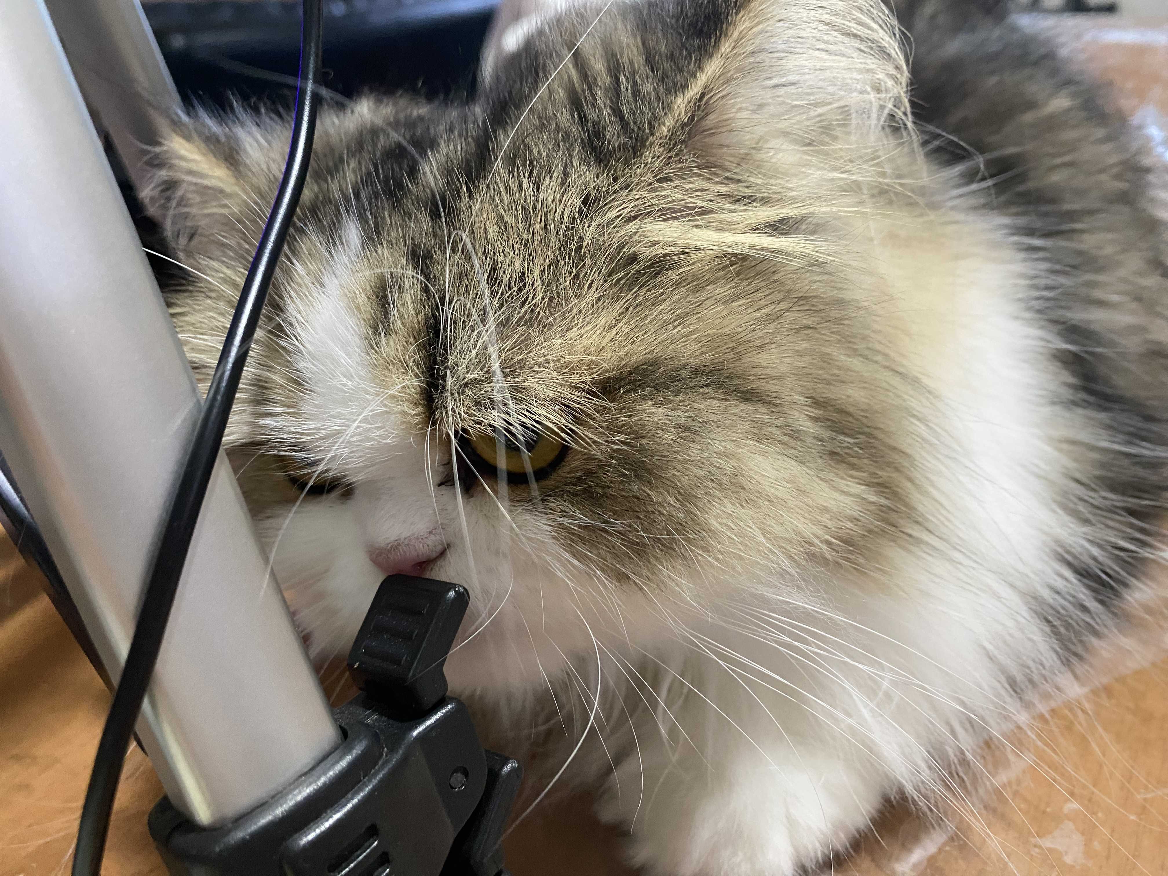 今朝、あんずがね、なんだか真剣な顔でライトの脚立の匂いを嗅いどったとよ。🗼 クンクン …