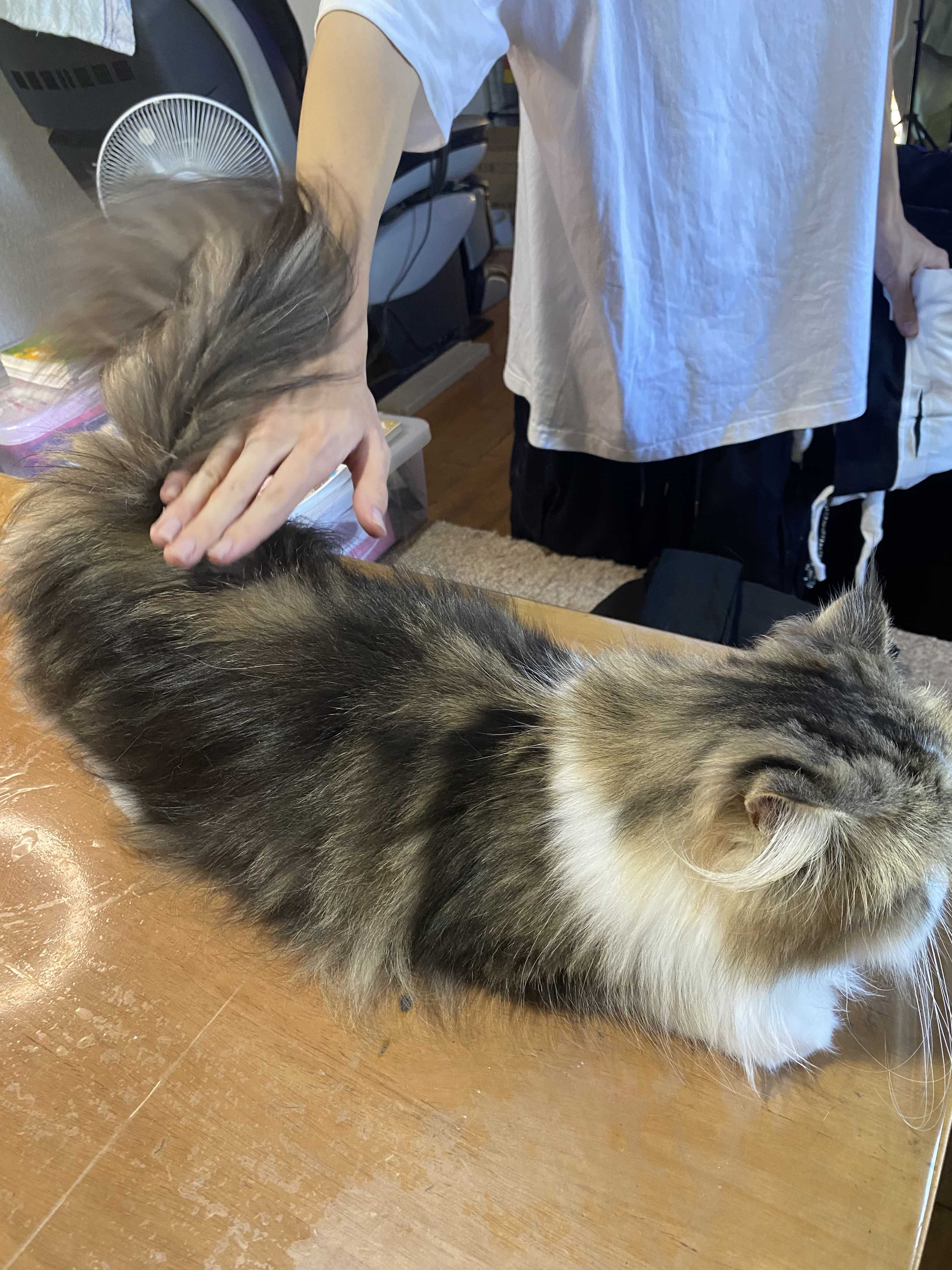 こんな風に、うっとりした顔で、体ばぐーっと伸ばしたりしとる。まるで、「とんとんのマッサージは最高やね!✨」って言っとるみたいやねぇ。🤣