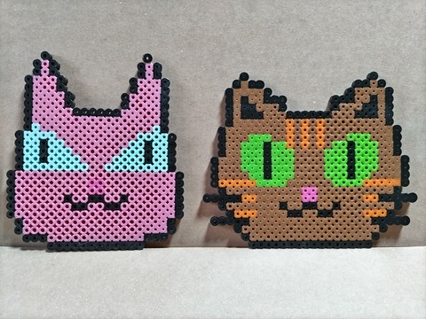 本日もご覧いただきありがとうございます。部屋の片づけをしていたところ、あるものが出てきました。 記憶にないんですが多分、いつぞやかプライズ景品で獲得したアイロンビーズ。当ブログであげているイヌねこ漫画「TK.World」のキャラクターグッズが欲しい私。そこでKが、限られたビーズのカラーと数の中アイロンビーズでキャラを作ってくれました。今日は、自作フィギュアに続いての作品の紹介になります。まずは、私たち夫婦・ねこTKから。こちら↓↓TKフィギュアと並べてみます↓↓めちゃくちゃカワイイです(^^Kの方の鼻を濃いピンクに仕上げているのが細かいw。通常アイロンビーズ作りは、先ず始めに図案を作成しその上にスクエアプレートを重ねてからビーズを並べていきます。しかしKは、驚くことに図案なしで頭の中のイメージだけで並べるという・・・(゚д゚)!フィギュアもそうですが、その感性と器用さに感心させられます。ここまでですでにビーズをだいぶ消費してしまっていたらしいんですが・・・さて続いては犬・猫たちです。こちら↓↓みんなカワイイ~(>_<)多分頭の中のイメージは・・・柴犬モモさん↓↓リリィ↓↓過去の写真を引っ張ってきましたが、この辺りが近いと思います。ボニーとアイロンビーズ↓↓いつもいい表情をしてくれるボニー感が、よく表れています。全部並べてみると、こんな感じです↓↓改めてこうやって見るとクオリティが凄いです。モモの柴犬感もしっかり出ているし、リリィの難しい三毛の特徴も出しつつ漫画の世界観が表されています(^^)フィギュアに続いてグッズが増えて嬉しい限り、ほこほこです( *´艸`)。大きさ的には、ちょうどコースターに最適なんですよね。こちら↓↓アイロンビーズは表面がツルツルして滑るので完全に自己責任ですが(^-^;コースターとして使ってみようと思います(^^)グッズ・・・色々欲しくなってくる。手書きエコバックとか・・・いいかも。今回は、漫画の世界観を表現したアイロンビーズ作品の紹介でした。自作フィギュア紹介↓↓https://plaza.rakuten.co.jp/nyantaro0924/diary/202212100000/漫画はこちら↓↓https://plaza.rakuten.co.jp/nyantaro0924/diary/202210250000/夫婦を猫化した漫画の登場キャラです↓おバカ夫婦の日常から猫たちとの日常まで良かったらご覧になって下さい。今日も貴重なお時間、最後までご覧いただきありがとうございます。人間にも動物にも優しい商品を紹介しています。興味のある方は、画像をクリック是非ご覧ください。↓↓テレワーク現場のストレスと5G時代に対応した電磁波対策防御グッズ「電磁番AZ」(denjiban-1301)の紹介「天魔王信長の野望を打ち砕く 我が武略に勝算あり」ノンフィクション¥880「戦国日本人奴隷貿易の真相とキリシタン弾圧の背景」ノンフィクション¥1280「治療家・セラピストのための生体経絡・生気論」¥980「時代小説短編集・憑依(つく)」ミステリアスな題材による時代小説¥280「徐福渡来伝説を検証する」太古の日本に渡来した徐福とは何者か?古代史ドキュメント¥400謎解き奇々怪々「歴史探偵団㊙情報」五十三話¥820「おいしいりょうりをつくろう」電子絵本シリーズ¥280「こわいおばけがでたぞ!」電子絵本シリーズ¥300「とおせんぼ」電子絵本シリーズ・ぬりえができる¥280