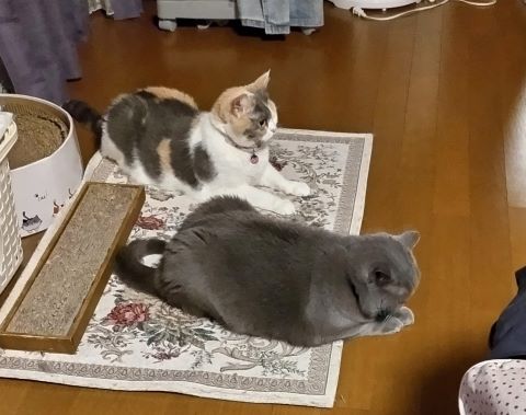 数日前の シャンプーという苦行にも耐え抜いた新入り猫の小夏入院中だった元飼い主のおばちゃん その後は・・・それぞれの近況になります。・親戚のおばちゃん予定した通り入院先の病院から 自宅を経由することなく介護施設への入居が無事に済みました。入居の際 少し混乱した様子だったらしいですがそこは対応に慣れておられる職員さんの助けもあり翌日からは精神的にも落ち着いて過ごせているそうです。自宅を離れ約3か月間の入院生活。。住んでいたマンション・小夏の事は やはり忘れてしまっているようです。引き留めるものが少ないことは 逆に良かったのかもしれません。おばちゃんにとって新しい環境での生活が始まったわけですが慣れるまでの間しばらくは面会も控えた方がいいとのこと。今回の件では 認知症の事、世話ができなくなり残された子のこと色々と考えさせられる機会になりました。おばちゃんの状況を見ながら私の事を覚えていないかもしれないけど 久しぶりに会いに行きいつか 元気に暮らしている小夏の事を写真で紹介できる日が来ればと思います。猫好きなおばちゃんに「うちの家族の愛猫・小夏なんよ~」って。・小夏前回の記事で紹介しましたがシャンプー後 サッパリ綺麗になった小夏先住猫たちとの匂いの人工交換を継続しながら 次のステップへと進んでいます。これは小夏部屋に設置しておいたクレート出入りしているので より強く小夏臭が付着しています。このクレートを空の状態で 先住猫たちのたまり場・お座敷へ早速にゃん太郎とゆず太郎がやって来ますまず先ににゃん太郎が匂いをチェックはやッ無駄のない動きッスンッωぐらいで秒でチェック終了続いて順番待ちしていた ゆずクンクンωスンスンωクンクンωスンスンωカッ!(ΦωΦ)パトロール隊だけあってか 入念に嗅いでおられる。遅れてラムも・・・クンスンωと短めにシニア世代では 最後にミント(♀)がやって来るも外から少し匂いを嗅ぐ程度で興味薄。縄張り意識の強い♂と それほど強くない♀との行動の差がよく分かる結果ですねぇ。ある程度先住猫たちに匂いを嗅がせて 自分たちの匂いも付けてもらったところで小夏部屋にクレートを戻します。そして今度は 逆に小夏が匂いを嗅ぎ・・・物理的に匂いの交換をさせてあげます。※アダルト世代の子たちには このやり方をしません。ボスであるにゃん太郎は 若い世代の子たちを嫌っているので小夏の匂いと混ざり合わないようにする必要があるからです。部屋と部屋が隣り合わせなので 窓を少しだけ開けてそこから互いの匂いを交換させてあげています。数日間はこのやり方を繰り返しいよいよ対面へと向かいます(^^)・シニア世代の子たちとの対面は クレート越しに短時間。・アダルト世代の子たちとの対面は 部屋の窓を全開にして 網戸と柵越しに こちらも短時間。・・・の予定。多頭飼いの状況から新たに猫を迎える場合は 先住猫・高齢猫の数が多ければ多いほど また年齢のバラつきがあればあるほど慎重過ぎることに越したことはないと思います(^^)次のステップのご紹介良いご報告ができればm(__)m前回の小夏シャンプー編・母からまさかのひと言↓↓https://plaza.rakuten.co.jp/nyantaro0924/diary/202304030000/このニャン’S相関図は今後どうなっていくのでしょう↓↓https://plaza.rakuten.co.jp/nyantaro0924/diary/202303180000/こちらは うちのニャン’S紹介です↓今日も貴重なお時間、最後までご覧いただきありがとうございます。人間にも動物にも優しい商品を紹介しています。興味のある方は、画像をクリック是非ご覧ください。↓↓テレワーク現場のストレスと5G時代に対応した電磁波対策防御グッズ「電磁番AZ」(denjiban-1301)の紹介「天魔王信長の野望を打ち砕く 我が武略に勝算あり」ノンフィクション¥880「戦国日本人奴隷貿易の真相とキリシタン弾圧の背景」ノンフィクション¥1280「治療家・セラピストのための生体経絡・生気論」¥980「時代小説短編集・憑依(つく)」ミステリアスな題材による時代小説¥280「徐福渡来伝説を検証する」太古の日本に渡来した徐福とは何者か?古代史ドキュメント¥400謎解き奇々怪々「歴史探偵団㊙情報」五十三話¥820「おいしいりょうりをつくろう」電子絵本シリーズ¥280「こわいおばけがでたぞ!」電子絵本シリーズ¥300「とおせんぼ」電子絵本シリーズ・ぬりえができる¥280