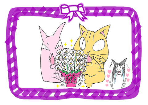 その幸福感たるや・・・4月は義母の誕生月☆お花・植物が大好きな義母への誕生日プレゼントK提案 最上級のお花にしよう!と白胡蝶蘭を贈りました。玄関に飾るふたりの姿を見て 涙ぐむ義母胡蝶蘭はやはり綺麗ですねぇ日頃の感謝も込めて良い贈り物ができたなぁと・・・普段こんなに間近でじっくり観賞する機会もそうそうない。胡蝶蘭の上品な花 ひとつひとつを細部に至るまで 私は愛でておりました。ん(・・?こっちもむ(・・?何かに見えやしない??!!!!!猫鼻やーーッ!ω胡蝶蘭の各部位にはそれぞれ名称が付いていて・・・花弁のちょうど中央にふっくらと突き出ている「葯帽」 逆三角形の黄色い部分が「花粉塊」。膨らんだ葯帽がマズル、花粉塊が鼻。ウィスカーパッドのω部分もあるし。。どう見ても猫鼻にしか見えん!他の花たちを見ても全部同じ 無数に猫鼻がーッ(ΦωΦ)実は・・・私とKは特に 猫の鼻・ω部分が異常なほどに好き過ぎることもあってですねぇ。。この大発見をすぐにKに知らせふたりで悦に浸る→サブタイ回収です(ΦωΦ)逆に今度は。うちの11匹の愛猫たちの中から 胡蝶蘭のこの部分に一番近い鼻の持ち主を探してみることにしました。マズル・ω部分が白で鼻部分が際立っている子。いました、ふたり。たまりません( *´艸`)むんッとしてくれてωお鼻のピンク色部分が 花粉塊といったところでしょうかねぇ(*'ω'*)奇しくもこのふたりの名前・・・リリーとリリィふたりとも ユリの花からつけた名前なんです。しつこいですね・・・・・・・猫好きもここまでいくと・・・・・・(^-^;失礼いたしましたm(__)m愛猫たちのωショットだけを集めてみました↓↓https://plaza.rakuten.co.jp/nyantaro0924/diary/202210270000/ねこ漫画の登場キャラ↓↓こちらは うちのニャン’S紹介です↓今日も貴重なお時間、最後までご覧いただきありがとうございます。人間にも動物にも優しい商品を紹介しています。興味のある方は、画像をクリック是非ご覧ください。↓↓テレワーク現場のストレスと5G時代に対応した電磁波対策防御グッズ「電磁番AZ」(denjiban-1301)の紹介「天魔王信長の野望を打ち砕く 我が武略に勝算あり」ノンフィクション¥880「戦国日本人奴隷貿易の真相とキリシタン弾圧の背景」ノンフィクション¥1280「治療家・セラピストのための生体経絡・生気論」¥980「時代小説短編集・憑依(つく)」ミステリアスな題材による時代小説¥280「徐福渡来伝説を検証する」太古の日本に渡来した徐福とは何者か?古代史ドキュメント¥400謎解き奇々怪々「歴史探偵団㊙情報」五十三話¥820「おいしいりょうりをつくろう」電子絵本シリーズ¥280「こわいおばけがでたぞ!」電子絵本シリーズ¥300「とおせんぼ」電子絵本シリーズ・ぬりえができる¥280