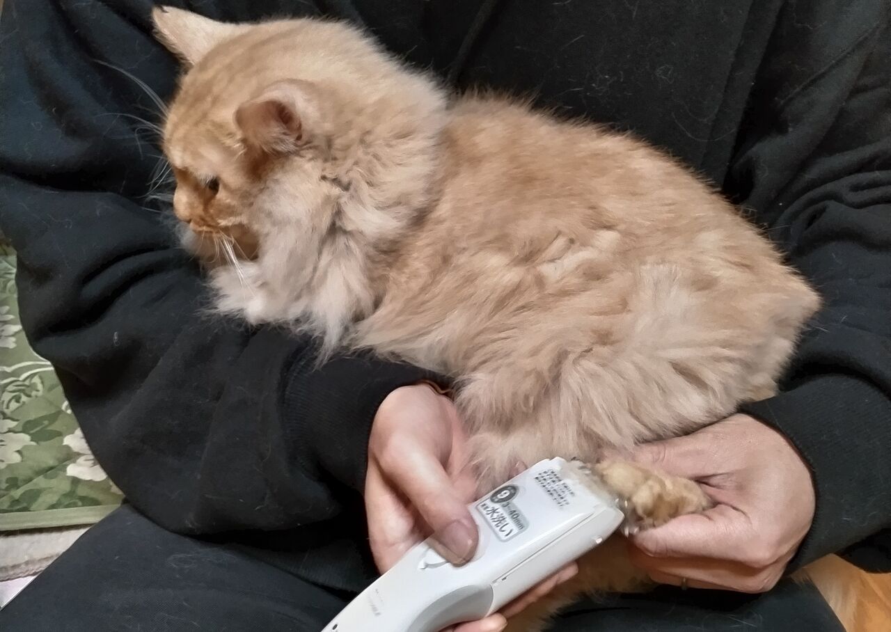 母親に保定をしてもらい、残りの足のカットと爪切りを何とか終えることが出来ました。