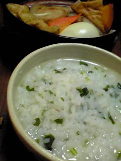 夕飯に七草粥作りました~娘の保育園の給食献立表見ていたら「七草クッキー」と書いてありました保育園の給食見本のヨコに、7種類置いてあって子供達がそれをみて「セリ、ナズナ・・・」と名前を言っていました今年一年の無病息災を願って。