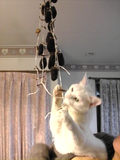 干し柿をいただきましたひもがついたまんまの*てづくりどこにおこうかしらみん&りん&らんにいたずらされないところそうだわ天井につるそうっと* りんは気になってんきゅう~ んきゅう~夢みねえさんがだっこしたら一所懸命 手をのばして確認*作業りんにとってはふしぎ いっぱいなのでしょうね よろしく*しゃしんにカーソルをあわせるとみんさんがおはなしします