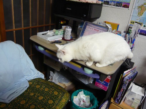 椅子の奪い方椅子に座りパソコンに向かうにゃおんの背後で、雪ちゃんがニャーニャーニャー。振り返ると、ちょこんと座ってコッチを見ている。何度も何度も鳴くものだから、「はいはい、ココに座れってね?」立ち上がって隣に座ると、にゃおんの周囲を半周し、空いた椅子へと飛び乗った。あぁそうか、椅子に乗りたかったんだな。むぅ。なかなかやるじゃないですか、雪ちゃん・・・こうしてこうしてこうするニャ【本日のビール】サッポロ黒ラベル、キリン一番搾り