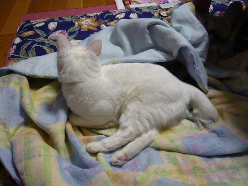 気まぐれ雪ちゃんジンマシンが痒くてなかなか寝付けずにいた夜、オカンの布団に乗った雪ちゃんが、座ってコッチを見ていた。「雪ちゃん、おいでー」小さな声で呼ぶが、全く動く気配なし。やがてトトンと畳に降りる音がして、しばらくするとポテポテ足音を立て戻ってきた。今度こそにゃおんの布団に来てくれる・・・とワクワク待っていたが、残念ながらまたオカンの方へ乗ったようだ。結局、朝まで一度もにゃおんの方には来なかった模様TTまだオカンの布団に入るまでには至ってないが、それは時間の問題かもしれん・・・【本日のビール】キリンクラシックラガー、キリン一番搾り