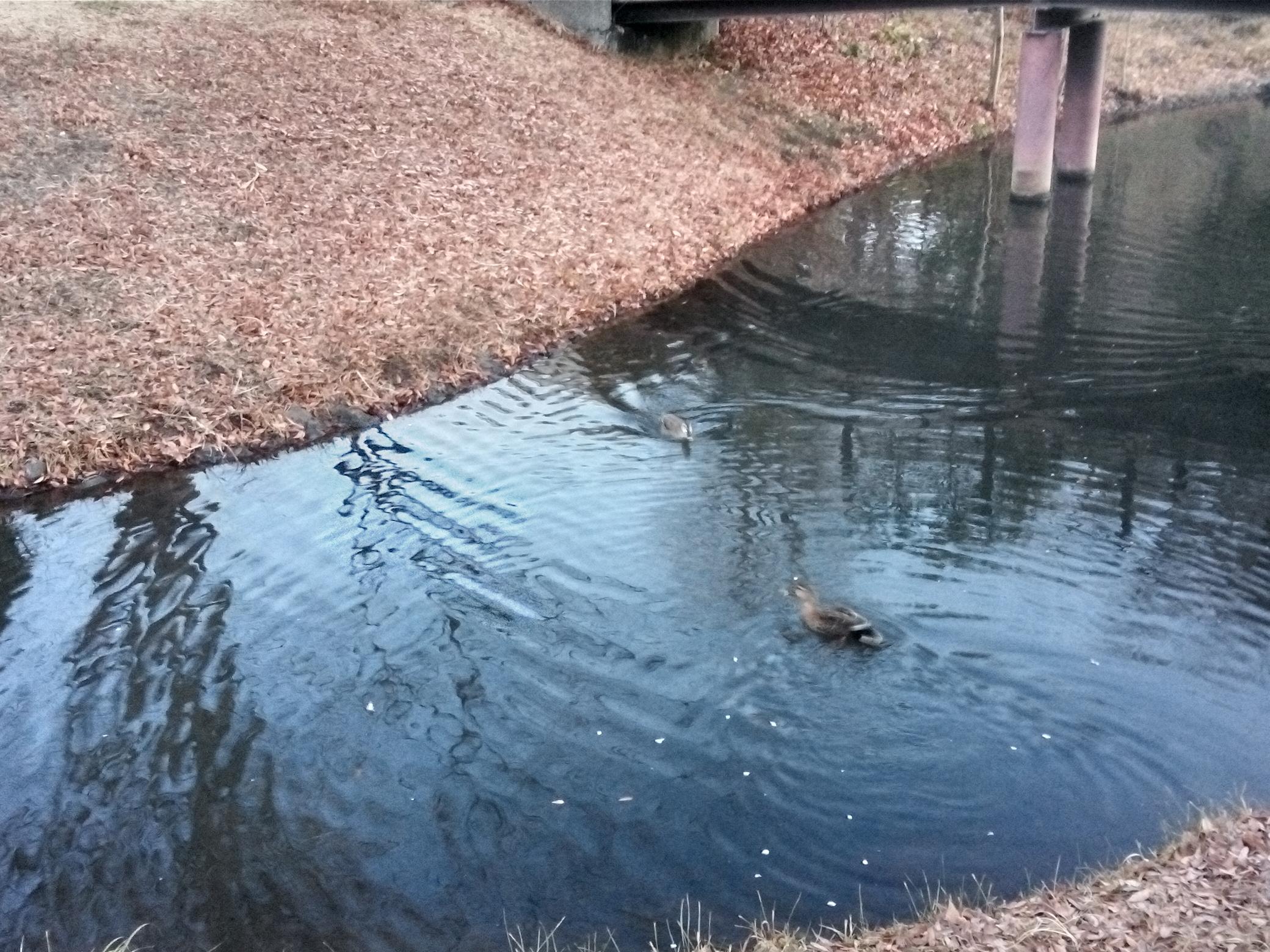 更にその先には3羽の家族?の鴨が待っていました。ウィンク