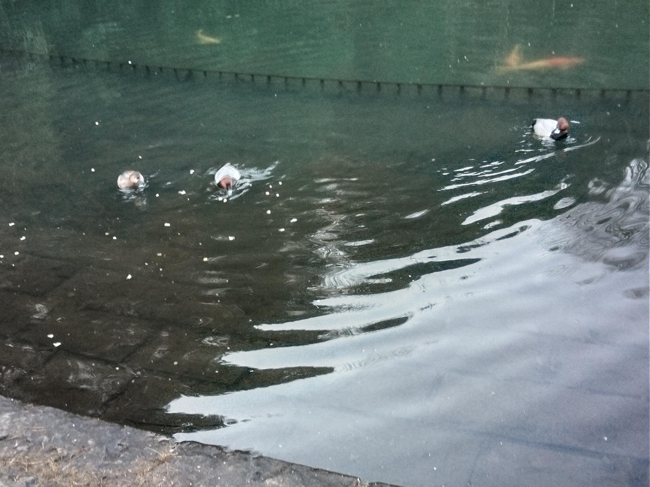 ​池には5羽、2羽、3羽と分かれて待っていました。ウィンク