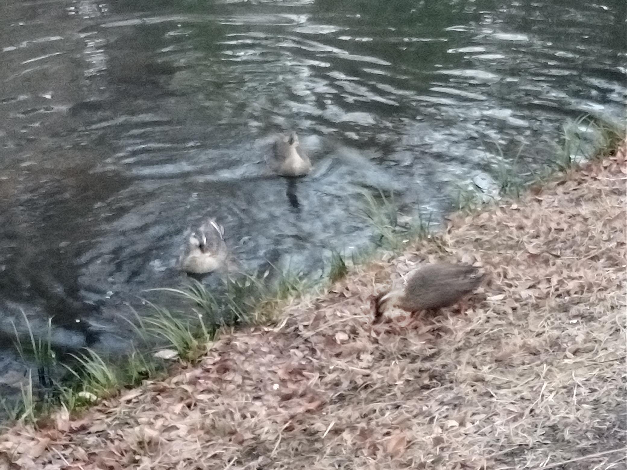 更に鴨池公園の池には3羽の鴨が直ぐに泳いで近くに寄り、元気にエサを