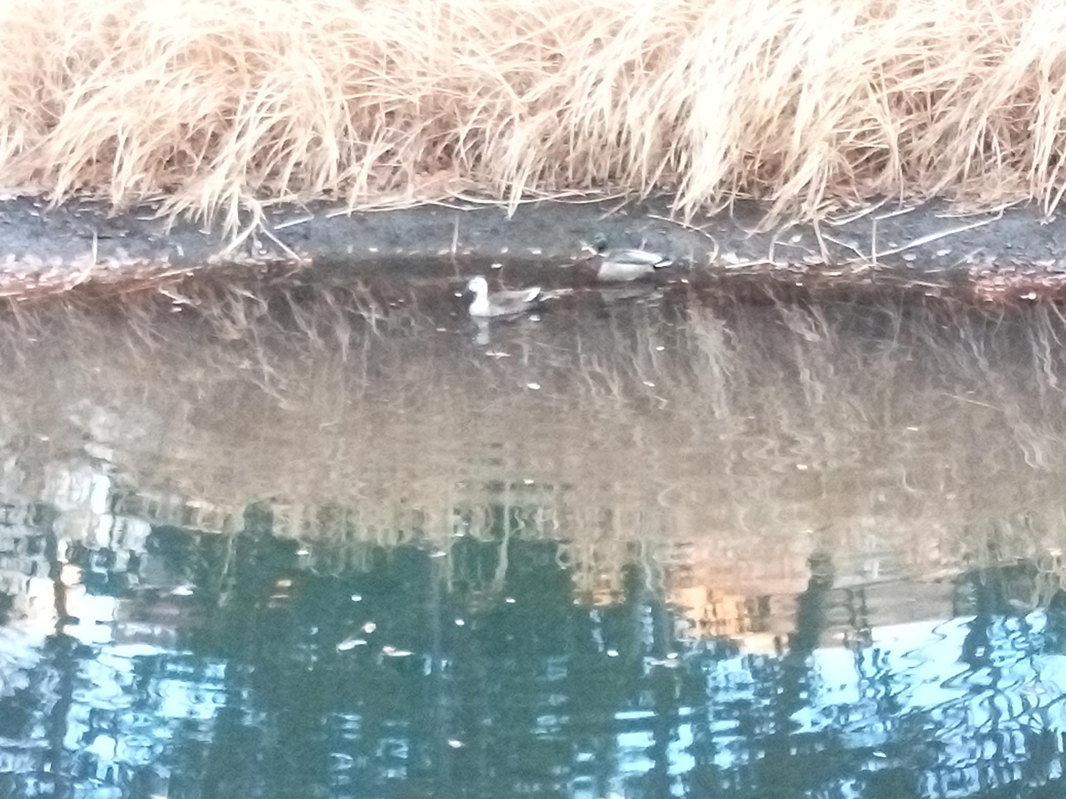 大原みねみち公園の池は大部分が凍ってる為に鴨が生活できる範囲が