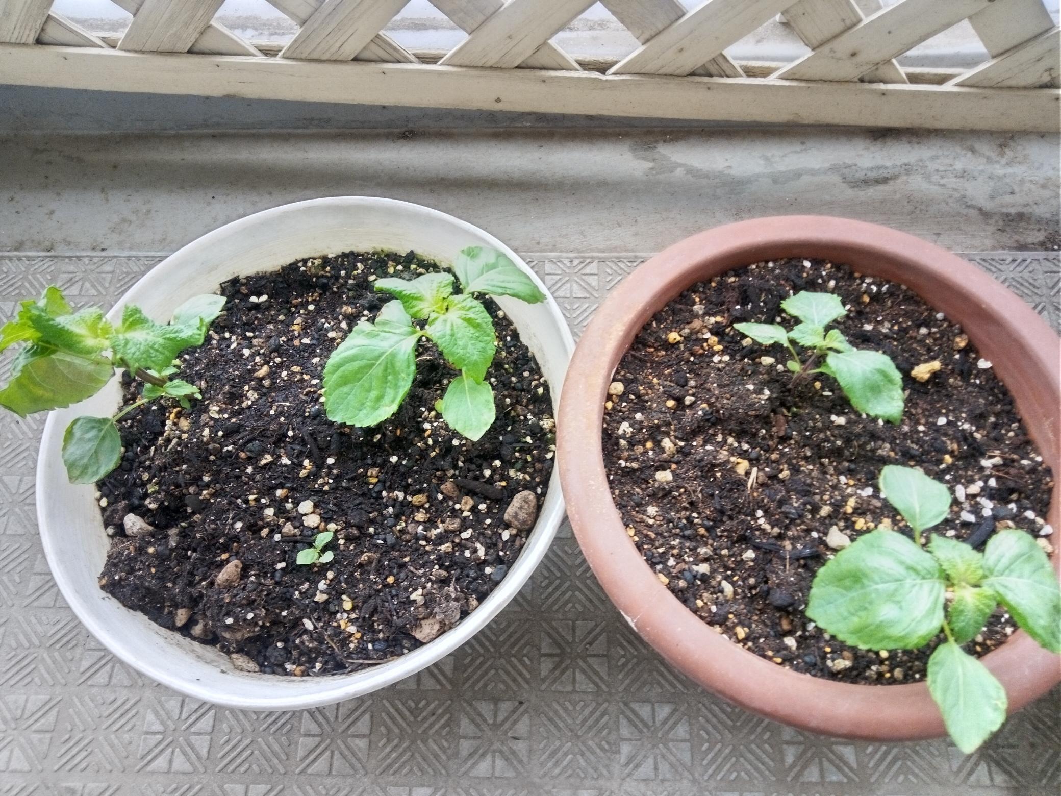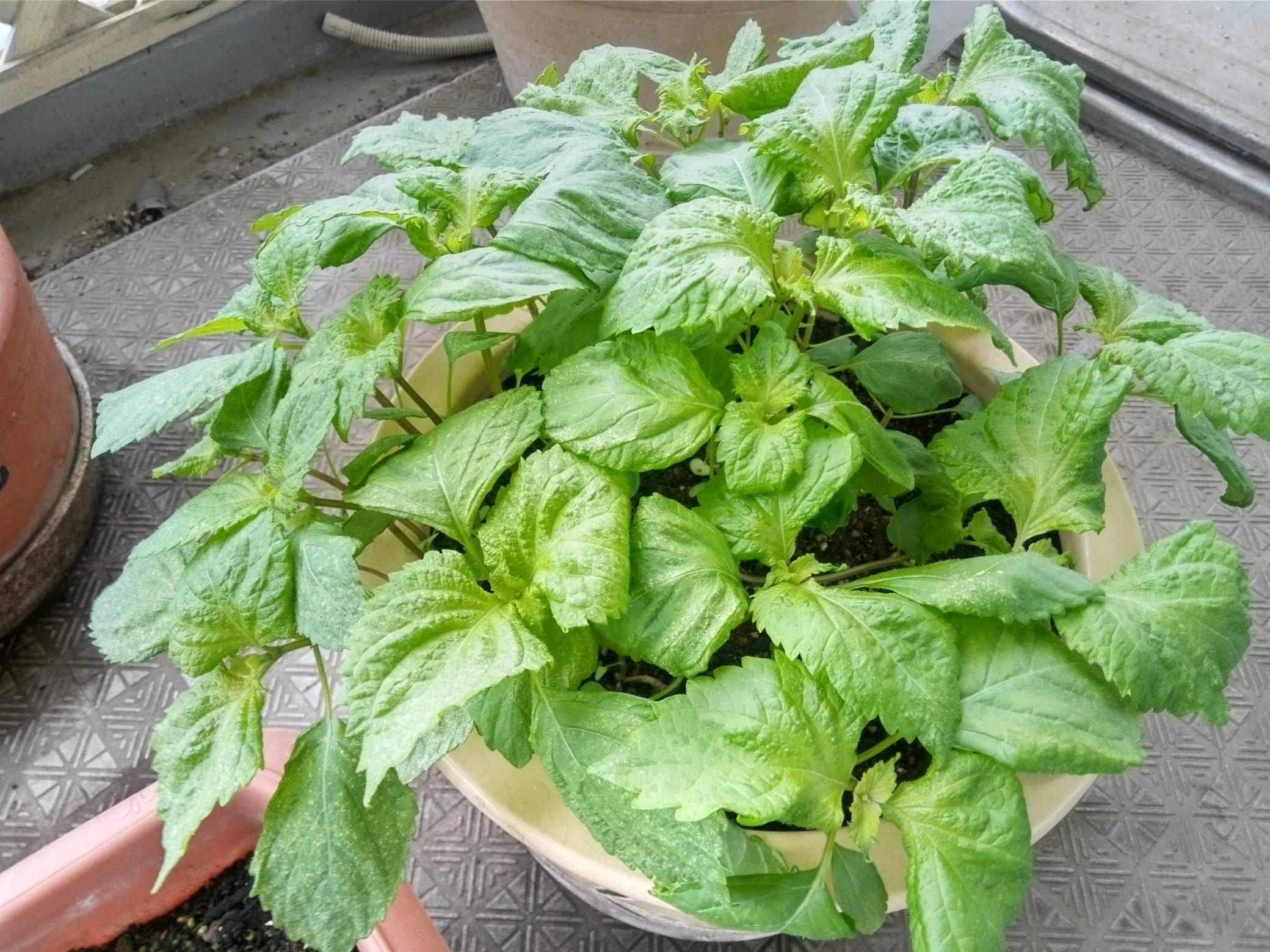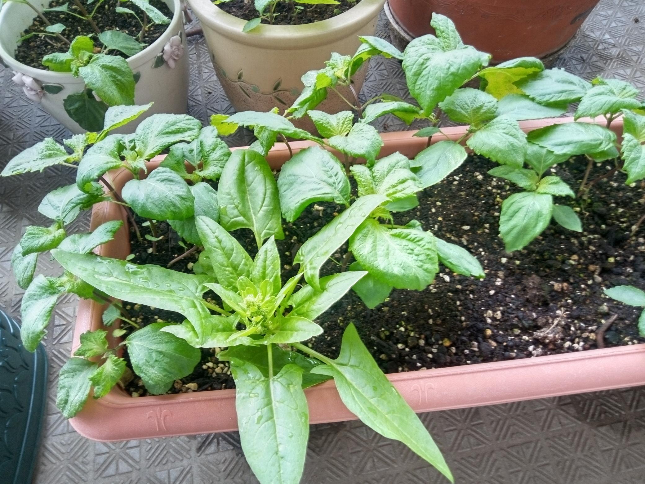 ​こちらは青じそのプランターにホウレン草が混じっています。