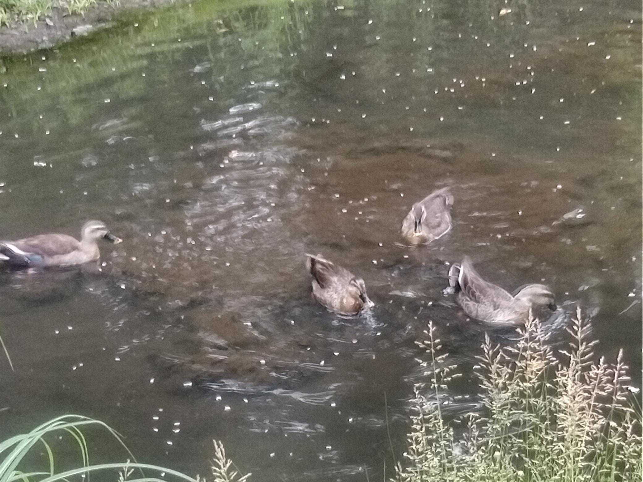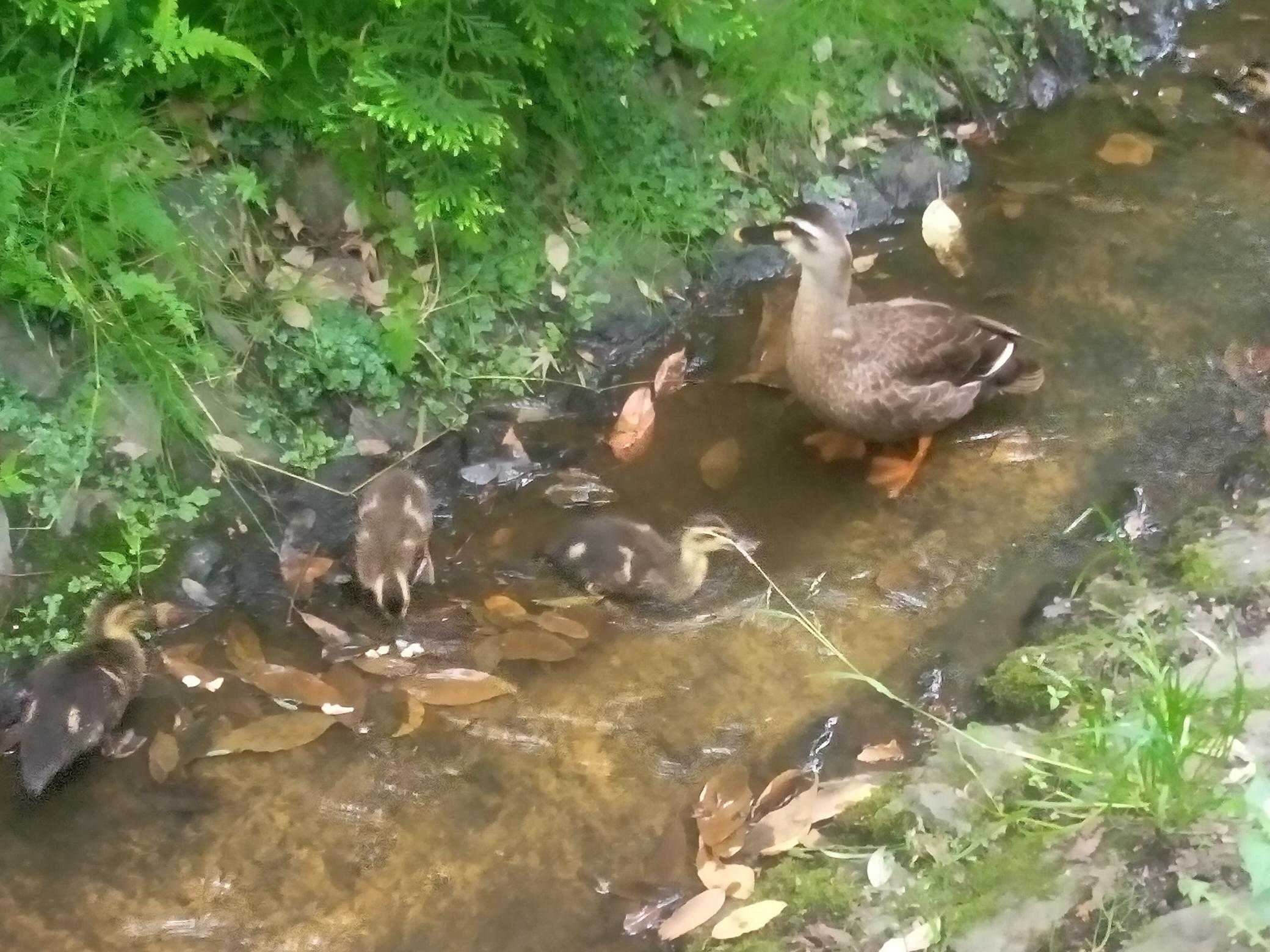 まんまる広場へ行く途中の小川やプールに鴨が待っていたら