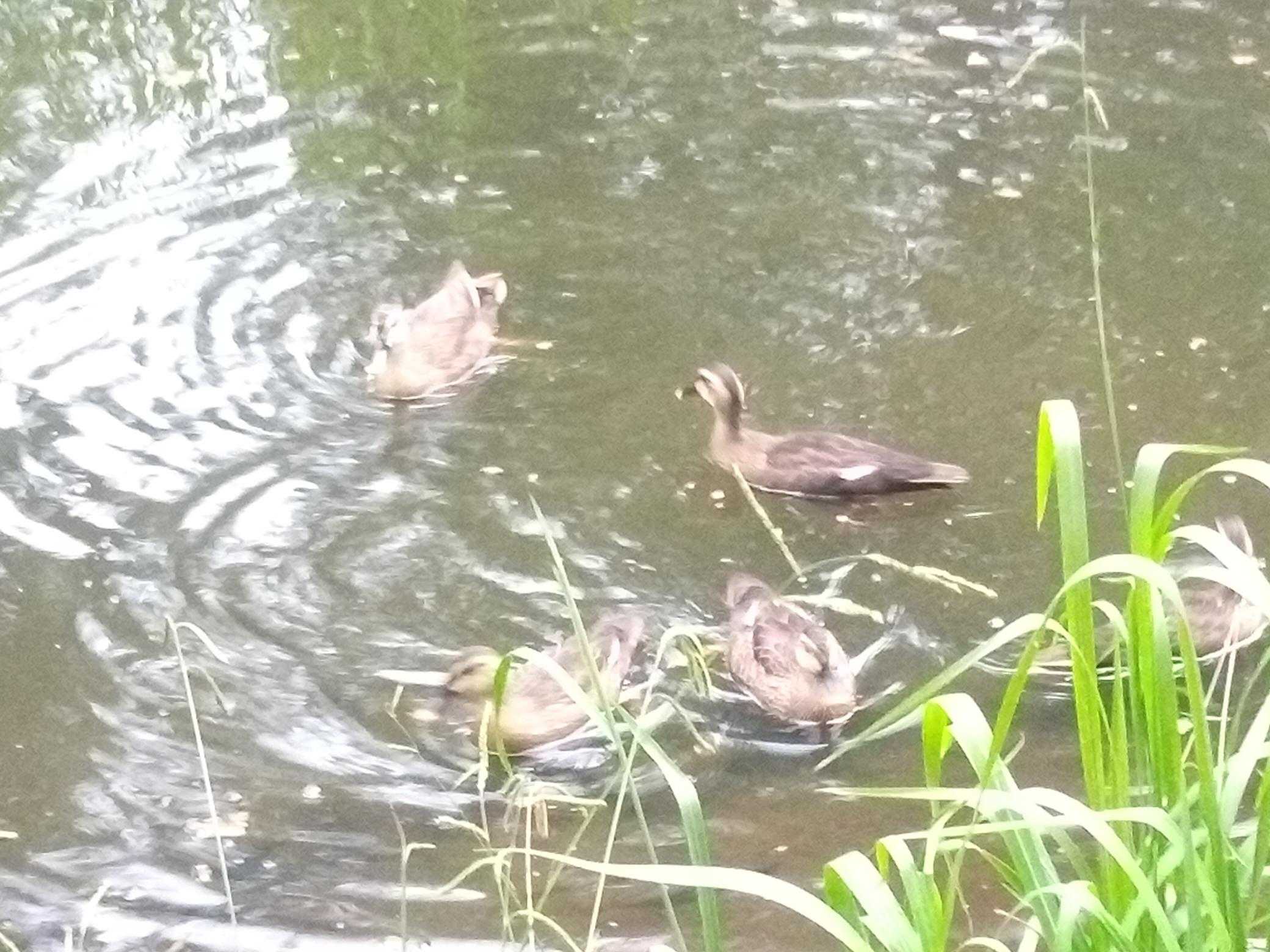 ​帰り頃には落ち着いた母鴨と4羽の小鴨。