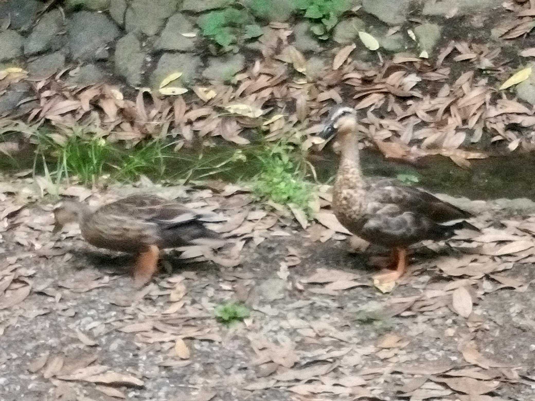 ​​すると池の手前の小川に番の鴨がいました。ウィンク