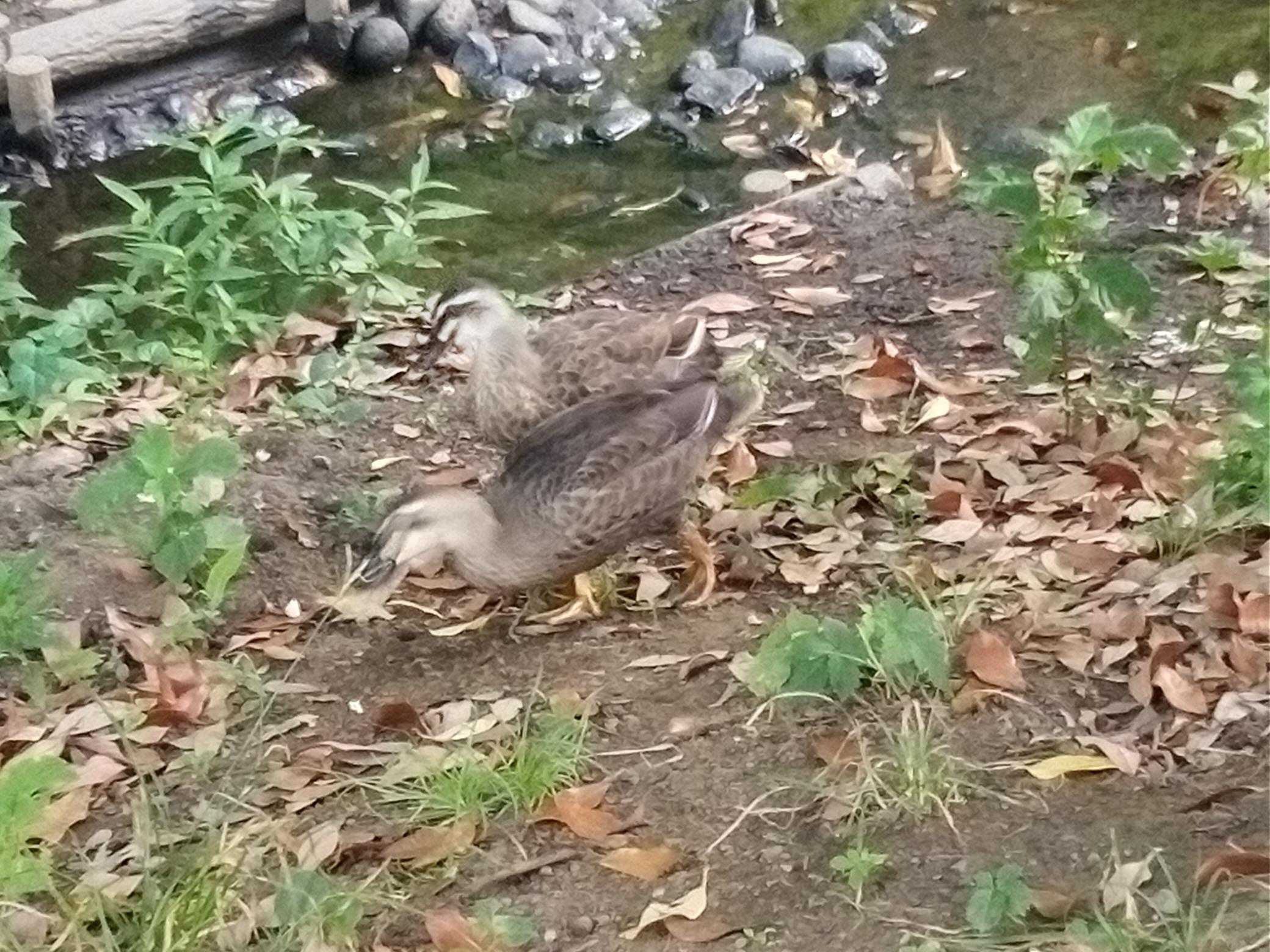 ​池手前の小川に1羽の鴨が待っていました。ウィンク