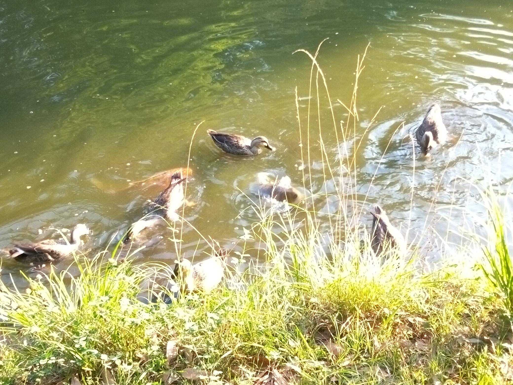 ​​何時もの通りに一番奥の池に鴨が待っていました。ウィンク