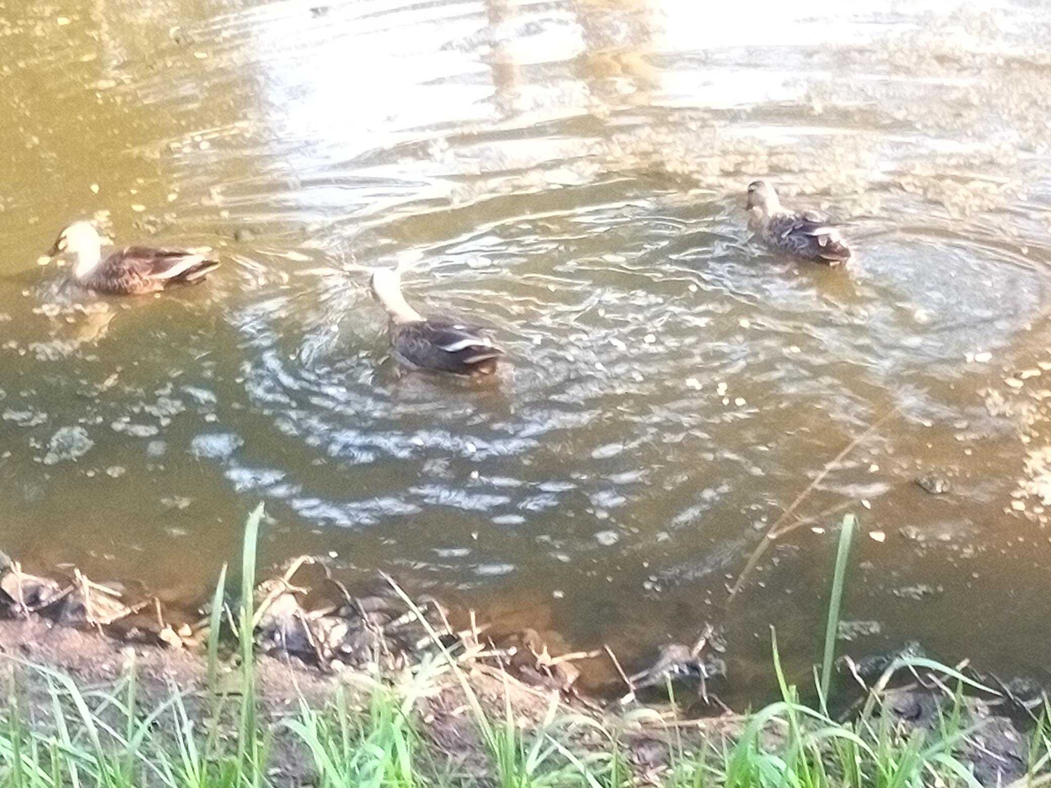 ​3羽の鴨は元気にエサを食べました。