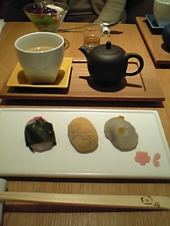 関西から大学時代の友人が出てきたので表参道で会うことになった!表参道で待ち合わせをしたのですが、・・・すごいことになってました。何事???って位の人人人。ちょっとの間呆然と立ちすくしてしまいました。これはやはり表参道ヒルズのせい?まずはランチを・・・ということで私は表参道で「お食事」をしたことはあまりなかったのでどこかいいところはないかと探して「ル・ゴロワ」というレストランに事前に予約しておきました。表参道沿いの通りを少し入ったところにあるこじんまりとしたお店でとってもいい感じのレストランでした!味も量もgood!調べていかないと見つけにくいところなのにひっきりなしにお客さんが入ってきては断られてました。予約しておかないと絶対入れない人気のお店みたい。その後、表参道をぶらぶらしてヒルズへ。すごい人でとりあえず端から端まで歩いて出てきました(^^;)ギャラリー同潤会が意外と楽しかった♪なんとか3階の両口屋是清が出している喫茶店にはいれてラッキー!おはぎがとっても可愛くて雰囲気のいい和菓子喫茶。込んでたけどここに入れたので満足!今度はもう少し空いたころにゆっくり行きたいな。