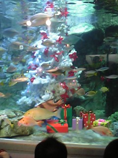 今日は、クリスマス・イプです♪今日のメインはクリスマス礼拝。(私も夫もクリスチャンではありません。雰囲気を楽しむためにクリスマスだけ教会に来る人って結構いるのよね~って牧師さんに言われた^^;)←こんな口調ではありません!礼拝は夜なのでそれまでどこに行こうか直前まで計画していなかったのだけど、私はプラネタリウムへ、夫は水族館へ行きたいということで両方が一緒になった池袋の『サンシャイン水族館・プラネタリウム』へ行ってきた!水族館に入ると、いきなり大水槽の中に大きなツリーが!うわ~綺麗!!ツリーの周りにはプレゼントの箱が散りばめられている。ちょうどサンタさんの魚の餌付が始まりこれがなかなか楽しめた♪その後、プラネタリウムで冬の星座・オーロラを見たのだがプラネタリウムってなんでこう、眠気を誘うのでしょう。。。夫いわく、「不眠症の人にはお勧めだよね!!」まるで催眠にかかったように眠くなるのです。プラネタリウムで最初から最後まで起きていられる人っているのかしら???その後、クリスマス礼拝へ。一人一人ろうそく(今って電気式なんですね。)をもち、厳かな雰囲気に包まれて、弦楽器の生演奏と、素晴らしいパイプオルガンの音色と聖歌隊の歌声に酔いしれました。私たちも賛美歌を歌うのですが、わたしは大学が、プロテスタントだったので毎年クリスマスには聖歌隊の募集があって私もろうそく持って歌いながらあちこち周ったな~ってあの頃が懐かしく思い出された。------------------------------------------------スケート、えらいことになってますね。採点ミスで優勝した織田信成が2位へ。トリノ行きを逃したと思われた高橋大輔が1位に。優勝者が表彰後に入れ替わるという事態。なんて可愛そうな。聞かされた織田信成、泣き崩れたというではありませんか。よりにもよって今日、採点ミスをするなんて。なんとも後味が悪いです。採点ミスに気づき、繰上げ表彰をしたときにはもうお客さんも帰ってしまっていたので再度、明日の女子の表彰時に、もう一度表彰だけやるそうです。明日の女子フリーは私たちも会場まで見に行くので見られるかな。女子の今日のSP、想像に反してなんだか面白いことになっていますね。安藤美姫ちゃんがんばれ~個人的には浅田真央ちゃんがんばれ~明日は会場で応援するからね\(^O^)/