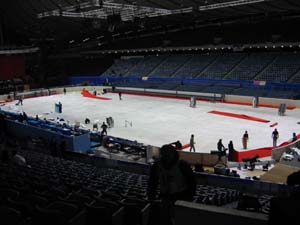 行って来ました!代々木国立競技場で行われた『全日本フィギュアスケート選手権』。朝から行われた女子シングルフリーと夜の部、「メダリスト・オン・アイス」チケットは別々でしたがしっかり両方とって見に行って来ました♪楽しかったーーーーーーo(^-^)o♪こんなに素晴らしい演技を目の前で見ることが出来きて感動!!女子フィギアの出場選手は計24名。昨日のSPの成績からグループ分けされ最終組がもっとも成績のよかったグループとなる。最初から全員の演技を見ているとだんだんとレベルアップしていくのがよく分かる。もちろんお目当ては5輪代表を競い合っている安藤・荒川・村主・恩田・中野選手と浅田姉妹!特に最終組の全員の演技のすばらしさ。みんなほとんどミスすることなくそれぞれに最高の演技が繰り広げられていき、もうもう、感動の連続。特に荒川静香さんと村主章枝さんの演技は本当によかった!荒川静香さんはまるで女王様のような気品とエレガントさを備えていて、彼女の演技を見ていると、スケートってジャンプだけじゃないんだ・・・って思わされる。最初から最後のポーズまで、うっとり見とれてしまい、終わったあと、思わず「美し~~~」ってつぶやいてました!村主章枝さんの演技、誰がなんと言おうとナンバー1でしょう!感動しました。あの引き込まれるような表現力、いろいろな感情が伝わってくる。そして手足のしなやかさと最後の高速スピン。会場中がスタンディングオーベーションだった。泣きました。そして、浅田真央、荒川を抜いてダントツトップ。やったー!また涙。若さや勢いのある演技もみていて気持ちがいいですがこういう、人に感動を与える演技ってやっぱりすごいなって思う。この二人の演技には芸術を感じました。そしてもう1人加えるとすれば、浅田舞選手。浅田真央ちゃんのお姉さん。彼女の演技も素晴らしい!気高くて白鳥が舞っているかのような美しい滑り。可愛いし大ファンになっちゃいました!昨日まで最大のお目当て!にしていた真央ちゃんの演技、確かにキュートでジャンプも安定していて技術的には素晴らしのだと思うけど何かもの足りないって感じなんですよね。恩田美栄さんは完璧な演技に自分でも納得のガッツポーズ!もらい泣きしちゃいました。中野由加里さんも全く引け取らないくらいに素晴らしい!はっきりいって今の安藤より上をいってる感じがする。結局トリノの代表選手に選ばれたのは安藤美姫・村主章枝・荒川静香の3人ということで選ばれなかった恩田、中野選手は本当に本当に残念ですがやっぱりこのなかから3名だとすればこの3人かな・・・という感じ。安藤は今日の演技も今一でしたが本調子ならもっと素晴らしいものが出せるのでしょう。(・・・と関係者の人たちが言っているから。)トリノでは是非4回転ジャンプを飛んで今回涙を呑んだ恩田と中野のぶんまでがんばってきて欲しいです。夜の「メダリスト・オン・アイス」エキシビションですがまたこれは雰囲気がガラっと変わって楽しかった!リンク上をぐるりと取り囲むように席が用意され、そこに座る人たちも。あれは何?特別招待席?係りの人に聞いてみるとアリーナ席の上の“スーパーアリーナ”席だとか。いいな~選手がマジかに見られて最後は選手たちとタッチもできてでも仕切りとか何にもないので迫力あるぶん、転んで飛び込んでくる可能性も?ちょびっと危険。昨日優勝を取り消された織田信成くんもパジャマ姿で元気に登場!!先に行われたやり直し表彰式ではまた泣いてたみたいでかわいそうだったな。オリンピックは残念だったけどこれをばねにこれからもがんばってね。今大会で現役を引退する予定の本田武史、男っぽくてかっこいい!エキシビションとはいえ素晴らしい演技でした。真央ちゃんは相変わらずキュートさ全開!もうアイドルですね。微妙だったのがシンクロスケート?う~ん、綺麗なのかどうなのか・・・1人がこけると超目立つのよね~体硬くて足上がってない人いたよ・・・ロッテのコマーシャルで使われている音楽を歌っているドリカムのステージもあってめっちゃ得した気分♪終わったのは夜10時過ぎ、朝から夜まで一日スケート見てたことになるのよね。でもこんなに素晴らしい選手がそろっているときに最高の演技が見られて幸せな一日でした。そして最高に楽しいクリスマスでした♪