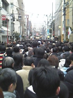 明けまして、おめでとうございます。本年もどうぞよろしくお願い致します。昨晩の大晦日はばたばたと年賀状を書き上げ、←遅すぎ近くのお寺にお参りに行き、1年間お世話になったお札さんをお返ししてきました。そして無事に気持ちよく迎えたお正月!新年のご挨拶のあと、毎年夫とお互いに今年一年の抱負を言い合うことにしています。私の抱負は、◇今年は自分の体を大切にする。◇不規則な生活で太ってしまった体を元に戻す。(4キロ痩せる!)◇バランスよく仕事をする。です。その後、初詣に行ったはいいけど、長蛇の列。もう帰る~と言い張る夫をなだめすかして並んできました・・・お参りしてきました(^o^;)ガードマンさんの話によると今年は例年になく込んでいるとか。それにしてもすごかったー(ToT) 正面中央に鳥居が立っているの見えますか?約1時間並びました。そのあとぷらぷらと東京ドームへお散歩。正月元旦から絶叫マシーンは列をなしていっぱい。好きな人っているんだ~でもキラキライルミネーションいっぱいでお散歩には最適でした!帰りに正月バイキングを発見!おいしそうーーーーーーーーー o(^-^)o♪行く?????行こうかぁ♪・・・てことでダイエットを宣言したその日にお腹いっぱい食べてしまったのでした。クリスマスとお正月の間はダイエットは無理です^^;←きっぱり