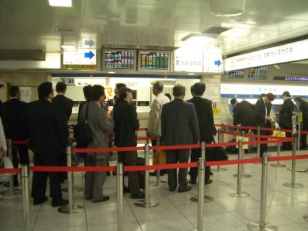 最近、モバイルスイカの定期券で通勤している通勤時、大勢の人を見ているがまだ定期券を携帯スイカでしている人を見かけない私のひそかな自慢である実はモバイル定期券にするにはいろいろと制限が多くそれらをクリアしないといけないこれが結構面倒なのであるところで今日モバイルスイカを使って初めて新幹線に乗ったこれも事前にやることがいくつかありその手順を踏まないとモバイルだけで乗ることが出来ない新幹線の当日券売り場には大勢の人が列を作り順番を待っているこの順番待ちもモバイルスイカならまったく問題なく乗車直前まで変更も出来る新幹線乗り場に行くと大勢のお客さんが自動改札で手間取っており係員が何人もスタンバイしているそんな中、果たして無事に自動改札を通れるのかせっかくの初行事なので左手にデジカメを持ち右手でモバイルスイカを自動改札にかざしたところカメラに収めようとしたがこれがなかなか難しかった無事改札を通過いやいやなかなか面白い時代になったものである