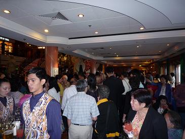 船への帰還時間は夜の8時ですこの時刻を過ぎてしまうと船は出港してしまうというのでみんな確実に戻ってきます(乗り遅れたら大変だということで、結構時間は気になるようです)夜9時、スターバーゴはペナンの港を出港しますそして明日の朝、目が覚めるときにはプーケットに到着しているはずです部屋に戻ってシャワーを浴び夕食に出かけます今夜は12階のプールサイドデッキを全部使ったバーベキューディナーがあるということで煙が立ち込める12階デッキに向かいました最初勝手がわからずバイキング形式のレストランにいたのですがどうも周りの人がほとんどインド人ばかりなのと並んでいる料理のほとんどがインド料理なので何か変だなと思いつつサラダとパンを食べていたのですがバーベキューは同じフロアのプールサイドでやっているということがわかり、そちらに移って再び料理を食べてきましたこのバーベキューディナーはお天気が悪くなると中止のこともあるのですが、何とかお天気はもってくれたようです夕食後は7階、8階にあるシアータ「ザ・リド」でスターバーゴ乗務員達のステージパフォーマンスがありますおよそ1,000人の乗組員が乗っているそうですが中には多彩な芸の持ち主もいてなかなか見ごたえのあるショーでしたちなみに今夜だけは写真撮影もOK!ということでしたショーの後は、カジノです!7階前方にカジノ「オアシス・クラブ」があります本格的なカジノで、大勢の人たちで夜遅くまでにぎわっていますカジノには、携帯、計算機、カメラ、ビデオは一切持ち込めませんので残念ながら写真をUPすることはできませn特にチャイニーズ系の人たちにはカジノ好きな人が多いですね!