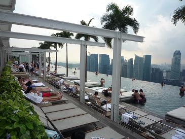 マリーナベイサンズに来ています。チェックインもスムーズで早い時間にもかかわらず、部屋に入れてくれたりとなかなかいい感じでした。オープン直後は「プール以外は普通のホテル」と言った厳しい声も聞こえて来ましたがこれだけのお客さんが来ている事実は認めなければいけないのかも知れません。マリーナベイエリアや新しいセントーサができる前は、これだけの人はどこに行ってたのかどこから来ていたのか、不思議なくらいの動員数です。きっと近隣諸国から新しい訪問者が増えているのでしょう!ロビーも、レストランも、プールエリアもそしてカジノも凄い人出です(話題の天空のプールです)(シンガポールの夜景を見ながらプールもいいもんです)