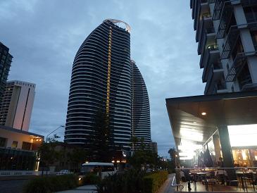 ゴールドコーストというと、「サーファーズパラダイス」が一般的ですが今回は、その少し南側にある「ブロードビーチ」というところにいますここはサーファーズより、少し大人の雰囲気のある落ち着いた感じがしますジュピターというカジノや大型ショッピングセンターもあり街の中心にはたくさんのレストランも並んでいます今回は新しく開発されたばかりの「オラクル」というエリアにあるPeppersという長期滞在用のコンドにいます最新の設備を誇る、とてもおしゃれなコンドでジム、プールはもちろんのこと、バーベキューエリアも充実していて滞在者に使いやすい設備が整っています右上の写真はオラクルを説明しているものですが上側がサーファーズパラダイスで、下側がオラクルエリアで一番下に2棟、高層の建物がPeppersです最近はホテルに泊まらず、このようなコンドに長く滞在してゆっくりとリゾートライフを楽しむ方も増えてきましたさらに、ロングステイして、ボランティア活動をしたり英語を習ったりする方もいるようですゴールドコーストも若者の多いサーファーズから少し落ち着いたこのブロードビーチに人気が移るのかも知れません(↑夕方のPeppers)
