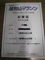 遅くなりましたが、11月23日(日)走って来ました 寒くもなく暑くもなくいいお天気で良かった。 まずは結果報告。 なんだか記録更新できちゃいました 今回自信なかっただけにメッチャ嬉しいです。 グロスタイム3時間56分。 ネットタイム3時間51分でした途中トイレで3分ロスしてるから、それがなかったら、 50分切れてたのに・・・って思ったら悔しいけど、しゃーないね記録証です でも走ってて脚はつりそうになるし痛くなるんやけど、 気持ち的に楽しく走れたのが良かった。 最後の5キロからは自分との戦いで、 「ガンバレ、ガンバレ、みんなが応援してくれてる。 自分なら最後まで頑張れるやろ!!」 なんて言い聞かせながら走りました。実は練習中に怪我をしてしまって凹んでた時期がありまして…。夜外を走ってて自転車と激突して膝と顔右半分を強打。しばらく顔の痛みはあったりで、、自分の不注意に落ち込んでました。そんな事があっただけに、このタイムに驚きと感動です一緒に行ったジム友もみんな完走。 2人は初フルやったけど、いいタイムで完走してスゴイです。 今回ランの師匠Yチーフとも出会えて、それも嬉しかったでは大体の記録を。 号砲が鳴って5分してからスタートのゲートをくぐる。 5キロ32分くらい 10キロ1時間くらい 15キロ1時間25・分くらい 20キロ1時間50分くらい ハーフで1時間55分でした(ちょっと早いなぁー) 25キロ2時間15分くらい 30キロ2時間40分くらい 35キロ3時間12分?(覚えてましぇん^^;) 37キロ3時間25分くらいかなぁ ここら辺でトイレ行って3分ロス。 40キロ・・残り2キロやぁーと思い時計見るの忘れました ゴールが見えたとき3時間55分から56分に変わったとこやって、 最後の力振り絞ってダッシュしました(笑) ゴールしたときは両手挙げて喜んだよ。 で、やっぱ感動して泣いちゃいました ゴールしてもらえるTシャツと参加賞の帽子 ホンマいつもフル走って思います。 フルマラソンは過酷ですなぁー そして頑張ったのは自分なんやけど、 まわりのみんなの応援があってこそ頑張れたと思うので、 ジムのスタッフさんやジム友には感謝してます。 (こんなことしてました^^;) どうもありがとうございました