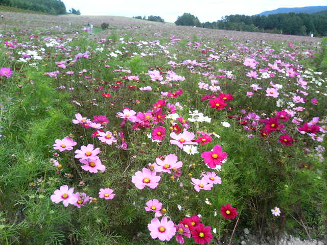 あまり通常の日々と変わらないけど、ちょっとした旅行に行きました。道東、遠軽にある太陽の丘コスモス公園に行ってきました。日本最大級のコスモス公園とのふれこみでしたが・・・その通りかもまだ、5~8分咲で満開とまではいかなかったけど、綺麗でした。