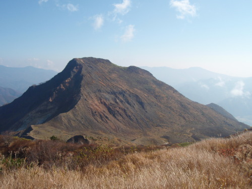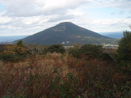 尾びやんの百名山の4回目は東京の羽田空港から飛行機で約55分の八丈島にある八丈富士(標高854m)と三原山(標高701m)です!尾びやんは2011年の12月に初めて八丈島を訪れました!八丈空港から見える二つの山、八丈富士(西山)と三原山(東山)に何だか登山意欲を感じました!八丈富士の登山口は八丈空港から車で約15分の鉢巻道路内にあります。登山口から1280段の階段を登り終えたら御鉢めぐりの火口に出ます。火口一周の御鉢めぐりは約60分!この御鉢めぐり、晴れていましたが風が強い印象が残っています!御鉢めぐりから見る展望は素晴らしく、八丈小島もすぐ近くに見えました!八丈富士の頂上の標識は階段を登り切った所から約20分位で到着します!頂上は御鉢めぐりの途中にあるので、山頂は狭く、風が強かったです!展望は御鉢めぐりの稜線や八丈小島が良く見えました!夕陽に照らされ、真っ赤に染まる八丈富士も魅力的です!八丈富士からの下山途中から八丈空港が真下に見えました!空港の後の山が三原山です!三原山は八丈島の町役場より無線中継所まで車で行けます!無線中継所から約45分で見晴らしの良い尾根道に出ると三原山頂上まで約15分!三原山の頂上硫黄が溶けて緑色の硫黄沼 落差36.3mの唐滝八丈島は年平均気温が17.8度の高温多湿の常春の島で12月でも寒くありませんでした!尾びやんにとっては八丈富士も三原山も魅力を感じさせてくれた山でした!