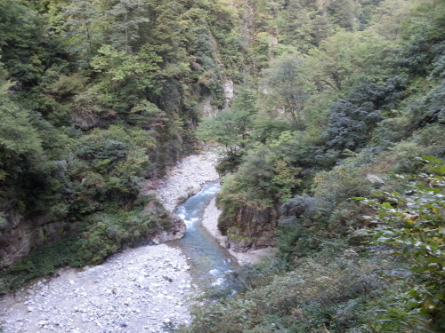 奥黒部渓谷「名剣温泉」 黒部渓谷トロッコ電車の終着駅の「欅平駅」から奥鐘橋を渡って、祖母谷温泉に向う舗装された道を渓谷の美しさを見ながら歩いていく!「欅平駅」から徒歩で約15分! 奥黒部渓谷 名剣温泉の宿に到着!「名剣温泉」の内風呂 窓を開けると川の音が心地よく聞こえて来ます!源泉かけ流しの24時間 いつでも入れるます! 露天風呂は玄関の外の階段を下って、渓谷沿いの木道を少し渡った所にあります!川のせせらぎの音、温泉のかけ流しの音を聞きながら旅の疲れを癒します!ツルツルした感触と適度な温度でのんびりと浸かってしまい、時の経つのを忘れてしまい辺りは薄っすらと暗くなりかけていました!温泉の後の夕食もまた格別に美味しかったです!名剣温泉の名物である「岩魚」!岩魚の骨酒も岩魚の香りと口に含んだ時の甘さが食欲をそそぎました!朝食も豪華でした! 朝からご飯を3杯もお代わりしてしまいました!今年、「下ノ廊下」に行く予定が私の都合で行けなかった、山の会の女性達も一晩で見違えるほど若返る程、お肌がツルツルに見えましたよ!来年は「下ノ廊下」を歩いて来て、「また、このお宿に泊まりたいね!」と言っておられました!