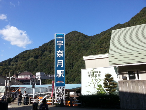 10月13日~14日の連休で尾びやんは何年ぶりに山に行かず温泉旅行を楽しみました!今回は富山県黒部市にある「名剣温泉」に行きました!「名剣温泉」に行くには宇奈月駅から黒部渓谷トロッコ電車に乗って行きます!トロッコ電車の出発駅である宇奈月駅は連休なのか一般観光客や登山者で賑わっていました!宇奈月駅にはトロッコ電車の記念写真用に設置されていました!尾びやんはトロッコ電車に乗るは初めてです!とてもワクワクしています!黒部渓谷トロッコ電車は宇奈月駅から欅平駅まで約1時間20分です!黒部渓谷トロッコ電車は約30分間隔で発車していますが、この日はどの電車もほぼ満員状態で発車していました!トロッコ電車は単線なので途中の駅で行き違いをします!トロッコ電車の車窓から宇奈月温泉を振り返る!宇奈月湖宇奈月ダム新柳河原発電所ねずみ返しの岩壁欅平駅