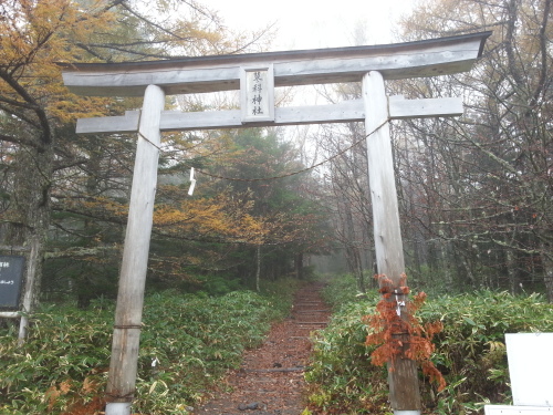 天気の予報どおり蓼科山登山は雨でした!早朝に蓼科山登山口である蓼科神社一の鳥居の駐車場に到着した時点から冷たい雨が降り続いていました!買ったばかりのレインウェアを着てスタートする!雨に濡れた木々や苔の緑が鮮明に輝いていた!ナナカマドやタケカンバ等の紅葉の時期は終わって登山道に枯れ葉がたくさん落ちていました!七合目一の鳥居前登山口より約1時間30分で将軍平のある山小屋に到着!将軍平から約30分! 岩稜帯を登り終えると蓼科山頂上(標高2530m)に到着!濃霧で周りの展望はまったく見えなくてとても残念でした!天気の良い時は八ケ岳連峰の山々や南アルプス等の山々がとても良く見えます!また、天気の良い日の秋に再チャレンジします!