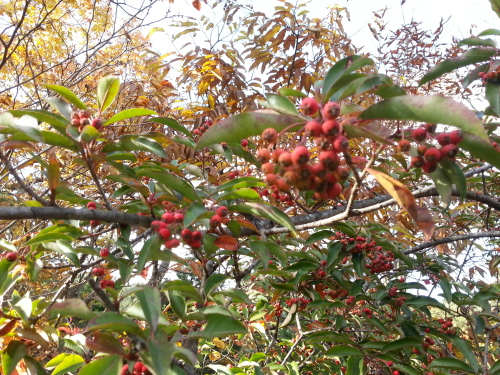 12月1日(日)京都府山岳連盟自然保護委員会の「府民紅葉観察会」に参加!コースは上賀茂神社→二葉姫稲荷神社→大田神社→大田の小径→京大演習林(上賀茂試験地)→叡山電鉄精華大前である。紅葉真っ盛りで賑わう上賀茂神社の中を散策する!二葉稲荷神社から大田神社の途中でムクの木にたくさんの実がなっていた!採って食べてみると甘酸っぱい味がした!大田神社の紅葉もとても綺麗であった!大田の沢のカキツバタは天然記念物で5月上旬から下旬が花期で、今はただの湿原!大田神社からは「大田の小径」のゆるやかな登りの尾根道を歩く!ソヨゴの真っ赤の実が目に入って来た!大田の小径から京大演習林の途中に「京大地学観測所」の建物があった!明治33年に建設された物で、かっては研究者や学生等が頻繁に出入りし、宿泊設備もあったそうであるが現在は無人である!京大演習林(上賀茂試験地)に向かう途中、樹林帯の間から比叡山(標高848m)が見えた!京大演習林(上賀茂試験地)は1949年から今の地にあり、現在の総面積は46.8ha!現在は樹木園及び見本林の再整備を進め、里山の二次林の成長や植生変化についても調査されており、多くの学生や研究者が訪れている!メタセコイアの大木! 樹齢63年の大木もありましたよ!京大演習林(上賀茂試験地)は、最近は一般の人々にも観察会等を通して樹木に親しんでもらうべく園内を開放されています!尾びやんは今回いろいろな樹木や植物の紅葉を見て楽しむことが出来て有意義な一日を過ごすことができました!