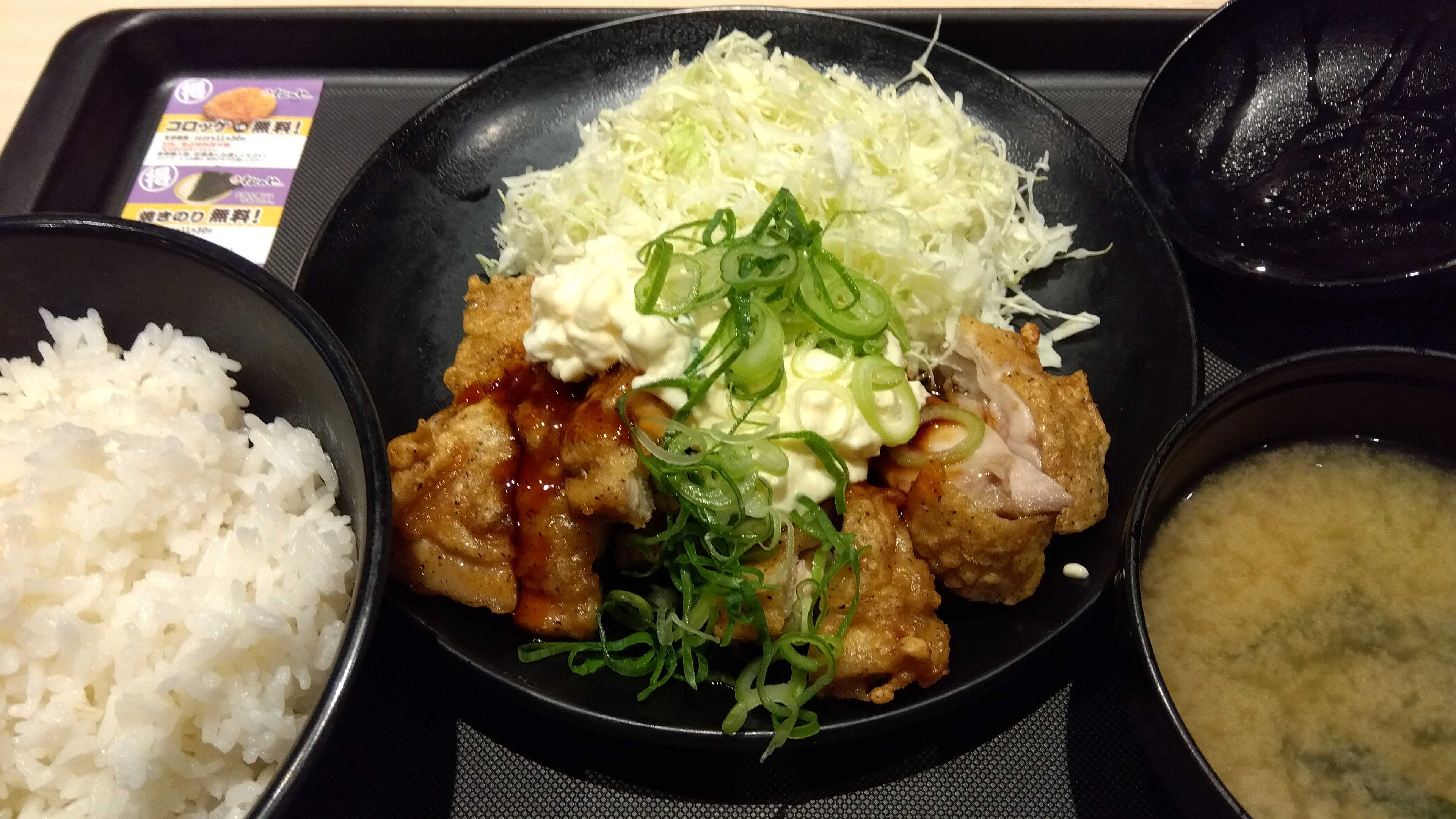 今日は、ちょっといい天気になったようです。晴れ時々曇りかな?気温は、20℃ちょっと手前くらい。この時期は、ちょうどいいのかも。でも、今朝の通勤時、まだ頑張っている人が。気温は、朝なので、10℃くらいで、寒いのですが…。電車の中で、ふと見た人が…。なんと、半そでシャツ1枚!上着などはないです。他を見ても、ジャンパーやコートなど来ている人が多いのに。なんで、半そでシャツ1枚なの って、疑問が。しかも、涼しい顔で寝ています。私には、できませんね。間違いなく寒さで震えて、隣の人に迷惑をかけそう。それでも、温かいインナーか何か来ているのかな?仕事は、ちょっと忙しくなりましたね。でも、何とかお昼は、確保。ゆっくり食べられました。でも、LAさんが負けたので、つまらないテレビになってしまった(笑)帰り道は、地元で。松のやで、玉子たっぷりタルタルソースのチキン南蛮定食を。玉子たっぷりタルタルソースのチキン南蛮定食期間限定メニューですね。ここも、今日は、見栄えより味で勝負???HPとは、全然違いますね。でも、タルタルソースは、たっぷりと。いつもより、豪華に食べられましたね(笑)あとは、もう少し、見栄えが良ければ…。でも、チキンたっぷりなので、満足ですね。
