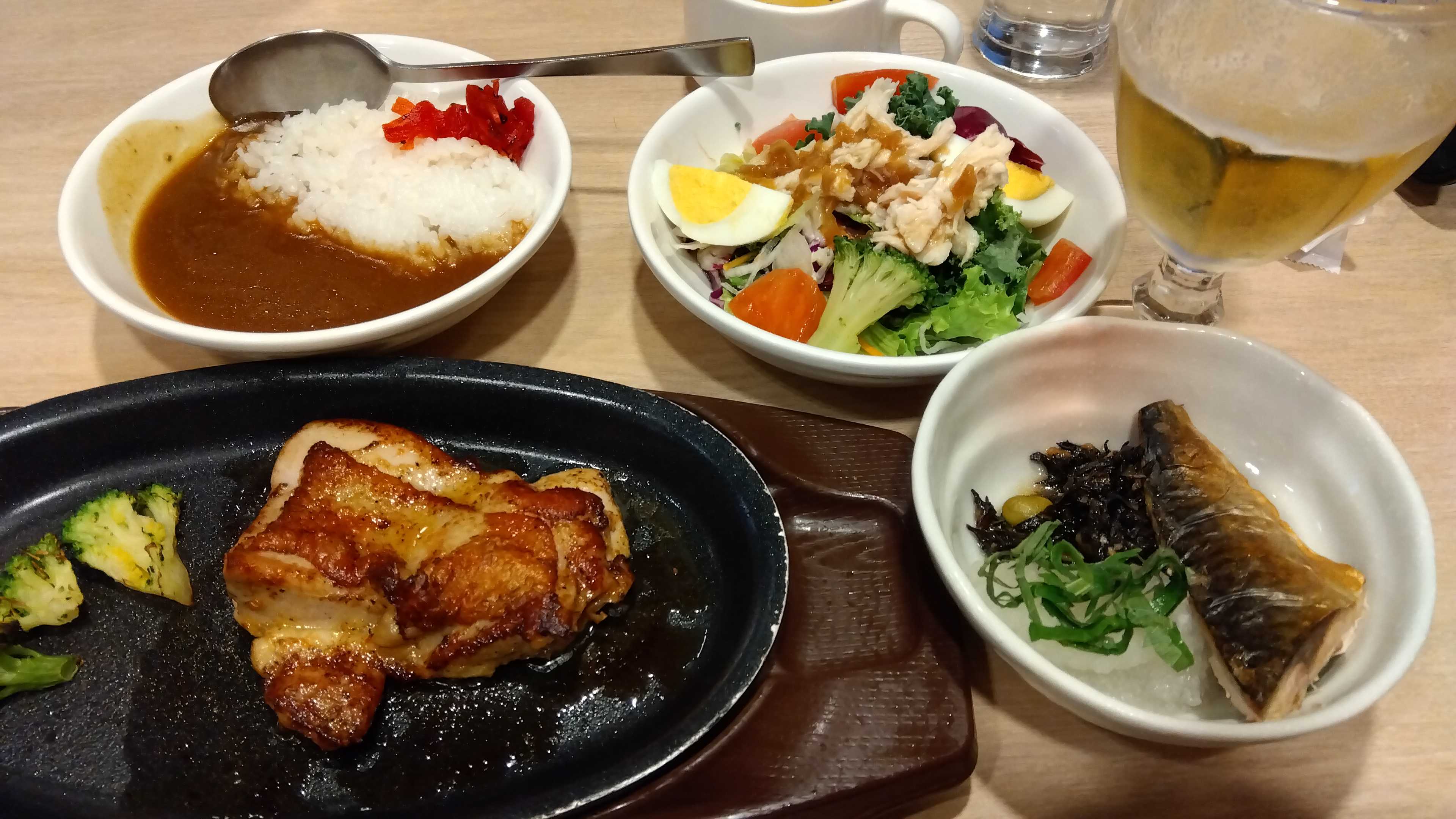 今日は、曇り時々晴れ?今朝は、雲が多かったようですね。日中は、ちょっと低めの17℃くらい。ちょっと寒いかな?ま、雲が多かったからね。仕事は、まあまあ。お昼休みにテレビを見たら、MLBがやっていた。昨日は、かなり長い時間やっていましたが、今日は、普通に戻った?でも、残念な結果に。でも、明日が、ありますから、大丈夫でしょう。帰り道は、蕨で。ガストで、ガストフィットメニュー2を、生ビールでいただきました。若鶏スパイス焼き、さばの小鉢、蒸し鶏とケールのサラダ(S)、ミニカレー今日は、ハンバーグではなくて、鶏にしてみました。でも、これがまとめて出てきたわけではなくて、最初は、簡単な、ミニカレーとサラダと生ビール。ちょっと間をおいて、残り2品が出てきた。メインの料理が来るまでは、やっぱり、我慢かなと。でも、それほど遅くなったわけではないので、いいかな(笑)満足ですね。