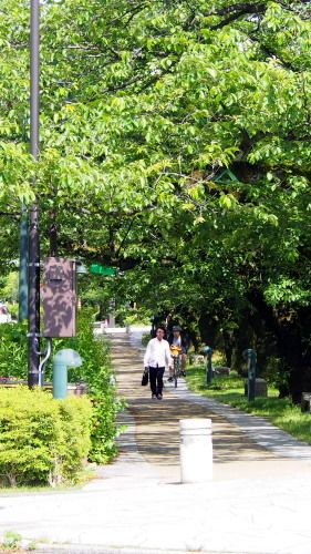 桜並木はすっかり青葉がきらめく小道に変貌していたけれど、それはそれで川風がそよそよと吹く心地いい小道でした![]()