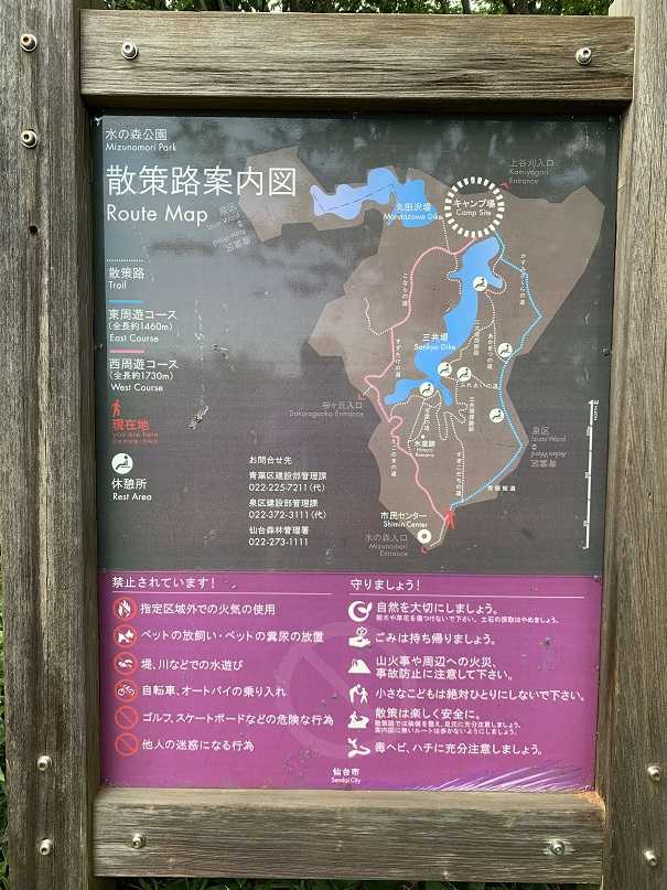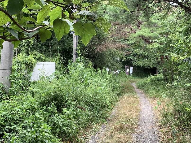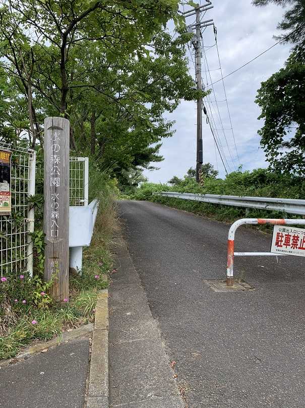館を出て市道沿いの敷地の南角が、広い公園全体の南端であり、公園内の長い園路の出発点がある。車止めがされ、林の中に進んでいく散策路なのだが、そもそも古くは秀衡街道(別名を古街道、義経街道)と呼ばれ、伊達政宗公が七北田を通る新街道と七北田宿を整備するまでは重要な街道だった。江戸時代は新街道の大名行列を避けるため、そして戦前は難を逃れるため、戦後は買い出しや病院通いのため、人々は秀衡街道を往来した。( 仙台市サイトの解説