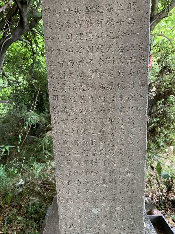 さっそく、散策路を進んでいく。阿曽沼先生の言うとおり(上記の前回 記事 です)、150歩ほど北進すると左手に叢塚が現れた。碑文は三面にわたって刻まれている(写真は一面のみ)。解読文は前回記事のとおりだが、目にすると、仙台に現実に起きた災禍の重みと、碑を建てて後世に伝えた意気に押される。