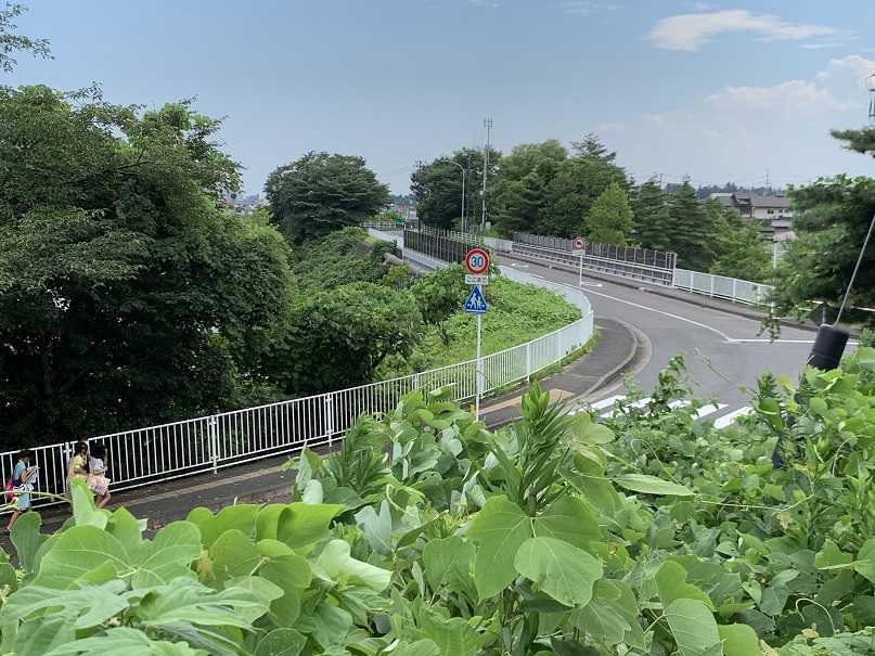 (↑同じ陸橋部分を、散策路入口地点から。市内中心部のドコモビルが見える)