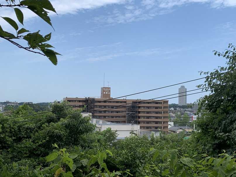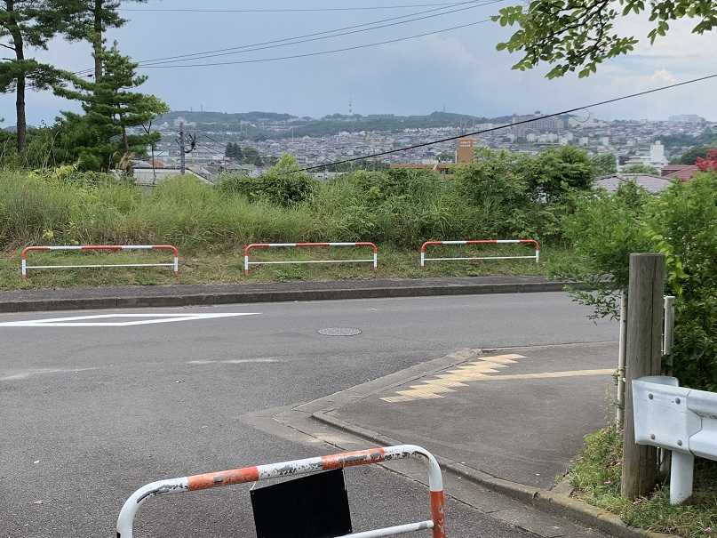 (↑公園散策路入口地点から、西側住宅地を望む。桜ヶ丘や中山か)