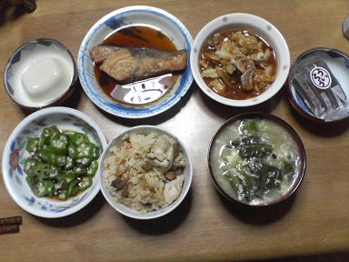 きょうはブリの照り焼きとその他諸々・・ブリの照り焼き。家人作成・・ご飯は鶏の炊き込みご飯・・豚肉と野菜の炒め物。市販の素を利用・・・オクラも頂きます。今日はポン酢をかけてみました。チンゲン菜と玉子のスープ。粗挽きコショーで頂きます。今日もおいしく頂きました。