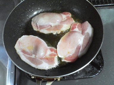 今日は豚肉と鶏皮を焼きます。まずは豚肉から…フライパンにオリーブ油を入れ、豚肉を焼きます。ほとんど素焼き・・とりあえず完成。次は鶏皮・・・シーズニングをふりかけて完成。これも完成。早速頂きます。味噌汁はモヤシとあぶらげ・・・今日もおいしく頂きました。