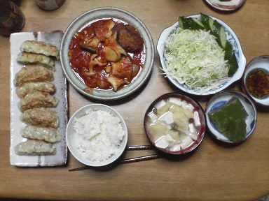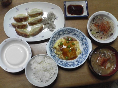 今日は餃子とビーフン・・家人作成の餃子・・・ビーフンも頂きます。味噌汁はモヤシとあぶらげ・・・少々脂の摂り過ぎ?今日もおいしく頂きました。