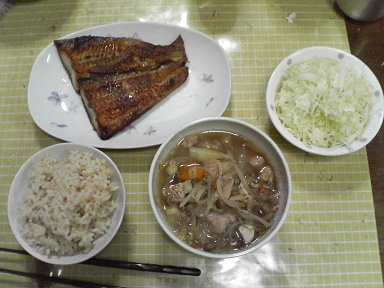 今日はホッケなどを頂きます。オリーブ油で焼いたホッケ・・今日は野菜スープ・・キャベツサラダも頂きます。今日もおいしく頂きました。